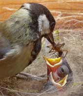Here, the male has just pushed a spider into a chick's mouth.