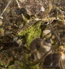 On the 27th November I photographed one of numerous tiny 'hairy' larvae that seemed to be browsing on what is probably mildew at the end of a log. These are still present, and today I also saw a number of plainer, and even smaller larvae feeding under the same circumstances.