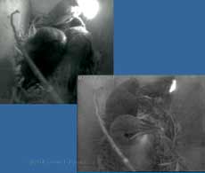 This didn't happen in box 1, but this time I see the blurred impressions of numerous small creatures (mites?) that frequently move across the image, and I think the chicks must be trying to catch them. I shall have to clean the cameras thoroughly before they are brought into the house!