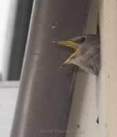 23 June - It's annoying that I've not been keeping up with the Starling diary during the last week. Fortunately, there has been very little to report, apart from the fact that the three chicks have been growing normally (as far as I can tell). Today, two of the chicks are spending much of their time looking out of the box, anxiously awaiting any sign that they are going to get fed. We sat outside for an hour or so around lunchtime and I didn't see any large meals being delivered at all, just small morsels, and not many of those. With fledging occurring some 21 days after hatching, The chicks are due to leave the nest either tomorrow or Monday(25th).