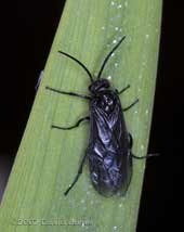Two weeks earlier than in 2005/6 the moth-like fluttering of a dark insect over the pond marked the first appearance of the year by a Rhadinocerea micans. This is a sawfly that is completely dependent on the Flag Iris which is the food plant for its larvae. I wonder if this is a new arrival or if it has metamorphosised from one of last year's larvae.
