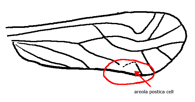 Next, a sketch to show the position of the areola postica cell on the front wing-