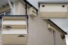 This picture shows the positions of the nests on the north wall of the house as they were last year, with the (so far unused) Swift boxes at the front corner, the Starlings half way along, and the Sparrows near the rear corner. It would have been tempting to remove the Starling boxes completely, but with the species being under threat though loss of nesting sites I have decided to try a different tactic for this year.