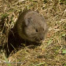 I believe that it is a Field Vole rather than a Bank Vole, the latter being redder in colour and with more prominent ears in photographs that I've looked at. As this picture shows, it has a very short tail. At no time did I see a second individual.