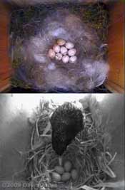 I haven't been able to establish when the eight egg was laid, but here it is, exposed at 6am when the female was looking out of the box and calling for her mate.
