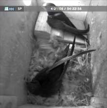 They were paying a great deal of attention to each other, and it wasn't until 8.21am that the female finally stretched her wings and headed out. As I write this at approaching 8.30am, 'White-Spot' has been looking out for around five minutes - He finally made the decision to leave at 8.34am.