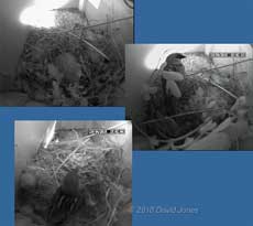 While that first image was just marginal, a visit by the female in the late afternoon left the eggs completely uncovered for the first time.