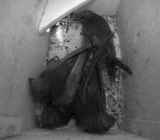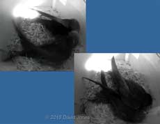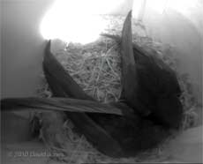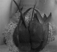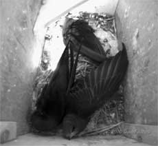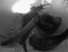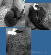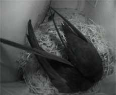 25 July - The video problem was a simple one to solve, more difficult was the problem of concentrating on keeping up with the diary! Anyway, things have been pretty quiet in SW(LE) since that last entry, with the usual long periods of rest during the day, interspersed with looking out and exercising, and then the chicks being joined by their parents each night, until last night when only White Spot (the female) returned.