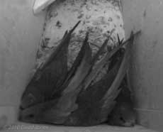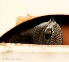This one may be somewhat misleading in that it appears as though it's looking up. Again, I need to emphasise that the plywood panel is horizontal, and the youngster is simply looking down, just as in the first picture. The camera was pointing up at an angle of around 80°.