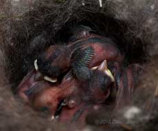 The chicks are now able to stretch well above the top of the nest cup as they beg for food,