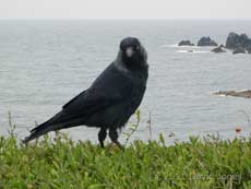 Whenever you sit at one of the tables nearest the cliff edge it is inevitable that you'll have at least one guest during the meal as the local Jackdaws try to entice you with their piercing eyes to throw them some crumbs. They were out of luck at our table, but nevertheless there was one coming and going throughout our meal.