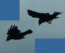 When bits of bread etc are thrown onto the hedge some pieces will fall into gaps in the top of the hedge. Searching for these requires the Jackdaws to walk about on what is a very uneven surface - sometimes one has to jump across holes!