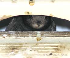 17 July - The second chick fledges from SW-up just as I'm thinking that were would have to wait for another night to pass! Today's weather was definitely not suited to mid-July. Temperatures fluctuated between 15-17C for most of the day, apart from a brief spell when it hit 18C in a bright spell during the late afternoon. While there was no heavy rain today we were plagued by showers carried in on a westerly breeze. The conditions appeared to have only a slight effect on activities in the three nest boxes. In SW-up the parents had a late start this morning, not leaving until 8.28 and 9.37am, and once out they didn't return until this evening. Apart from a few energetic wing exercise sessions, the chick's day was shared between resting on the nest and looking out, although it never seemed to be near to leaving. This evening the first parent returned at 7.34pm, with its partner appearing at 8.51pm, and for a while it appeared that all three birds were settling in for the night, albeit a bit earlier than usual. However, it wasn't long before the chick was looking out once more. At around 9.45 it became more animated, stretching its wings, perching precariously over the opening and making brief excursions back to its parents who were settled on the nest. By 9.55pm it became obvious that the chick was not going to stay much longer, and sure enough, at 10.02pm it finally disappeared out of the exit, seemingly un-noticed by its parents! I couldn't resist heading out into the driveway to check the ground but there was no sign of it - there was still a bit of light left in the sky, apart from the glow of the street lighting so I can only hope that the fledgling got to a safe altitude to rest on the wing overnight.