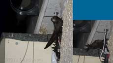 In SW-le the chicks, one especially had numerous wing stretching sessions during the day, and with the improved weather they had a couple more deliveries of food than they received yesterday. The female returned to the box five times, and the male four.
