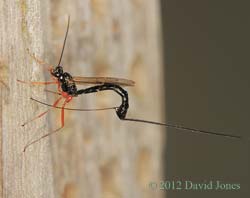 We did have some leaf-cutter bees laying eggs in one of the bee hotel logs - but more about them later, and while the other solitary bees seemed to be having only limited breeding success, their nests provided points of interest (on 11 August) for two species of ichneumon flies that we have seen here in previous years.