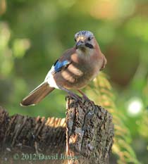23 December - As we approach Christmas Day it is difficult to look forward to it with a happy heart as our wonderful daughter-in-law Georgina finally lost her battle with cancer last Wednesday. Of course, while we adults struggle to get to grips with this, her little boy makes everyone around him smile whenever he is present. When with us he continues to watch out with great delight for the birds coming to our feeders. The Jays continue to visit, although not as frequently as in November. This morning I watched one collecting peanuts from the bird table. I need to clean the table and some of the feeders. Hopefully I can get this job done in the days between Christmas and the New Year when there may be a bit of a pause in family activity. I'm afraid that any efforts to sort out the disastrous state of the garden will have to wait for the New Year to have come and gone. I'm considering removing the small pond so that I can concentrate on the main pond in 2013. I haven't received any information about the Sparrowhawk and its ring so that is something else that I'll need to pay some attention to in January. It is unlikely that I will be writing another entry this week, so may I wish you Happy Season's Greetings.