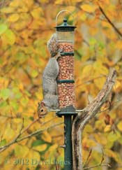 This morning we had a breakfast time visit from a local Grey Squirrel that need to leap to the peanut feeder and then be equally athletic when it was time to leave. Notice the brilliant colour of the Himalayan Birch at the moment. In contrast, the Rowan has already lost all its foliage, and after the poor summer neither has it any berries.
