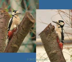 In contrast to this, the Jays made repeated visits in the morning and again in the late afternoon. It's now a month since they first arrived and since then not a day has passed without frequent visits by either one or two of them. There have been three in the garden several time, although it seems that 'three's a crowd', with one being chased away each time! A pair of Magpies followed the Jays into the garden this afternoon, but they were very wary and didn't venture down to ground level before flying off again.