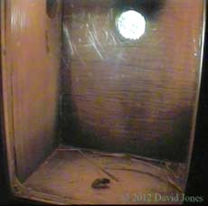 The other development concerns the Sparrows and Swifts dilemma . The nesting pair have been far less active in the box today, being away from it for much of the day, behaviour I'm more accustomed to see when egg laying is underway. So with no Sparrows at all in sight in the garden, this afternoon I headed up my ladder to take my one and only look in the box during this nesting period,