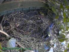 The weather conditions today left us with very little bird activity today, even with the feeders all cleaned and topped up with fresh supplies. However, there was some unexpected but very welcome activity down at the monitored nest site.