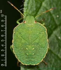 While I looked for them I came across two very fresh looking Shieldbugs. The first was this adult Birch Shieldbug - on a Birch leaf.