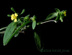 28 November - As we approach the end of the month the skies have remained for much of the time a glum sort of grey, although with no more than a hint of dampness. There have been just a couple of frosty starts since the previous entry, and these have provided opportunities for little Evan to do a bit of moon watching, leaning out of our bedroom window - he is even takes some pride in drawing moons these days! When my eldest son was small, at the time of the Apollo trips to the moon, we had a lovely inflatable moon. I've been looking for one to get for Evan but without luck so far - it seems that the moon is out of fashion.... I've just spent the first part of the evening watching the 'near live' satellite images being posted from NASA's Solar Dynamics Observatory spacecraft as Comet Ison made its close pass of the sun. While the images show incredible details of the sun' surface it seems that Ison took too close a 'look' and paid the ultimate price. A bit like the English cricket team, after a great deal of promise (and perhaps a generous dose of hype) it failed to stand up to the heat of that first (and only) encounter. So there will be no early starts on a cold December morning as I try to photograph the 'Comet of the Century'..... Back to the garden, and a bit of good news, although with a touch of disappointment - the mystery plant is a mystery no more. It is Sigesbeckia Orientalis, known by a variety of common names including Eastern St. Paul's Wort, and probably a native of South-east Asia, although it is also found in Africa, Australia, South America and has also spread to many parts of the world, including the USA and the UK. Described as a small, ugly weed, it nevertheless has a place in traditional medicine as a treatment for conditions such as syphilis, leprosy and other skin diseases. In China its sap has long been used to treat rheumatic pains. Our plant has now stopped producing flowers and seed production has also almost come to an end. I must thank Mike (who often comes to my assistance in matters grammatical!) for pointing me in the direction of an excellent website iSpot run by the Open University. This is a site where you are able to share your wildlife observations with an international community who are clearly ready to help with problems like mine. Initially I had avoided posting pictures to the site as I wanted to track the plant's ID down myself. However, with the plant coming to the end of its flowering I headed there with some reluctance (and I suppose a sense of defeat) and within a couple of hours the plant was identified.