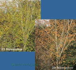 Autumn has finally caught up with our Himalayan Birch. A week ago its leaves were still largely green, but today they are decidedly autumnal, and below the tree the path is hidden by a carpet of leaves.