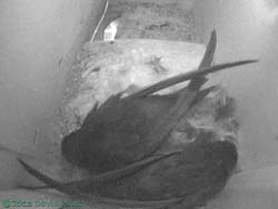 This morning the Swift in SW(ri) left the box at 7.05am, nearly two hours before the pair in SW(up) headed out, and tonight SW(ri) remains empty. The remaining pair returned at 8.53/8.59pm, having stayed away all day.
