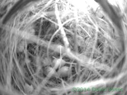 In SW(lo) the egg count is now up to three. During the day there has been a sparrow sitting on the eggs quite frequently but it was not as continuous as I would expect once laying is complete. I'll be watching out for a fourth egg tomorrow, nest canopy permitting.