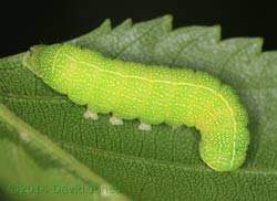On the Birch, the parasitized caterpillar has now disappeared. However, on another branch nearby I spotted this healthy example of the same species (which I must look up, but not tonight).