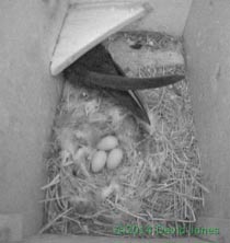 However, at the end of the day the net was still empty and the egg had been moved back from the opening and now rests against the far end wall of the box. No egg was laid in the box today - it will be interesting to see if one is 'delivered' tomorrow.