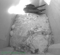 The morning's main news comes from the nest boxes. While the pair in SW(le) still has two eggs,