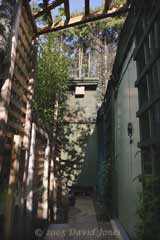 Going to the nestbox takes you under a lattice framework which has honeysuckle and Jasmine plants growing up it. The nestbox itself is on the side of a tall structure, built so that I can take photographs of the nest from behind a glass panel. The birds' entrance is about 10ft above the ground. I will add a new section about this, and the other nestboxes around the garden when I have time over the next couple of months.