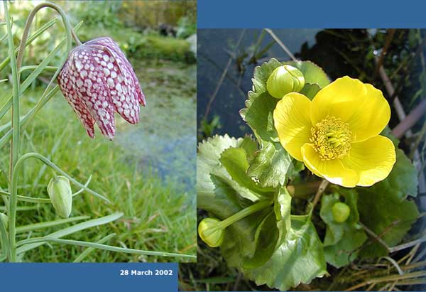 Snakes-Head Fritillary and Marsh Marigold in flower