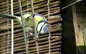 Thursday 4 May (mainly cloudy, sunshine pm, max 15C) saw the female make 39 trips out of the box between 5.43am and 6.49pm. The total time out was 190 minutes, with one trip lasting 59 minutes. The male fed her in the box 43 times during the day, mostly mealworms and there were two liquid(?) feeds. Thursday evening has not yet brought the cracking of eggs, so the wait goes on. It is now 13 days since the last egg was laid so it must be getting close to the first hatching. The day did bring an all too rare visit by a thrush, I think it was a mistle thrush, which spent a short time singing from the top of the trees at the bottom of the garden. Over the last few days there has been quite a bit of wren activity in and out of an ivy clump near the blue tits' box. The ivy has already been used successfully by blackbirds this spring. Last year blackbirds and dunnocks raised young in it. Friday 5 May was to bring the breakthrough, so to speak, that everyone had been waiting for - the first egg to hatch. The Chicks Hatch -The First Seven DaysChicks -The Next Six DaysChicks -The Race to FlyYear 2000 Diary |