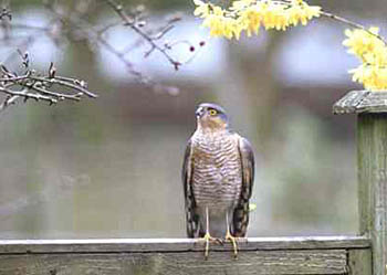 Wednesday 3 May was a dull, cloudy day (max 11C) with a damp northeasterly breeze. It saw the female greatly curtailing her outings. Between 5.47am and 7.08pm she made a total of only 36 trips, the longest being just 6 minutes, lasting a total of only 116 minutes. She spent a great deal of time with her feathers fluffed up and often tucked her head under her wing in her nighttime sleep position. The male was much more involved on Wednesday with 39 visits to the box with food, mainly mealworms. In one half hour period she eat 7. Twice he arrived at an empty box. Interestingly, when he enters the box he always goes to the South side (in shadow) of the nest, whichever way the female may be facing. When the female turns the eggs they rattle loud enough to be heard by anyone standing in the garden near the box. As an aside to developments in the box, Wednesday saw the first flowers opening on the Hawthorn tree and our first sight this year of a pair of hedgehogs in their noisy courtship ritual. Also, there was a timely reminder of the perils that face the blue tits as they emerge into the world.